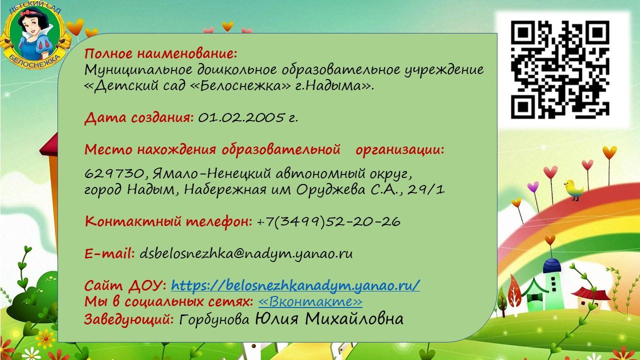 Информационные ресурсы организации: https://vk.com/public_ds201